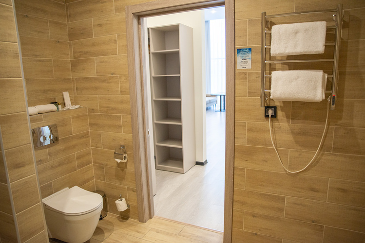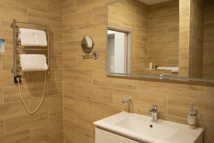 Для удобства гостей санузел номера оборудован отдельной душевой кабиной и ванной, а так же предусмотрены все необходимые в каждой поездке косметические принадлежности.